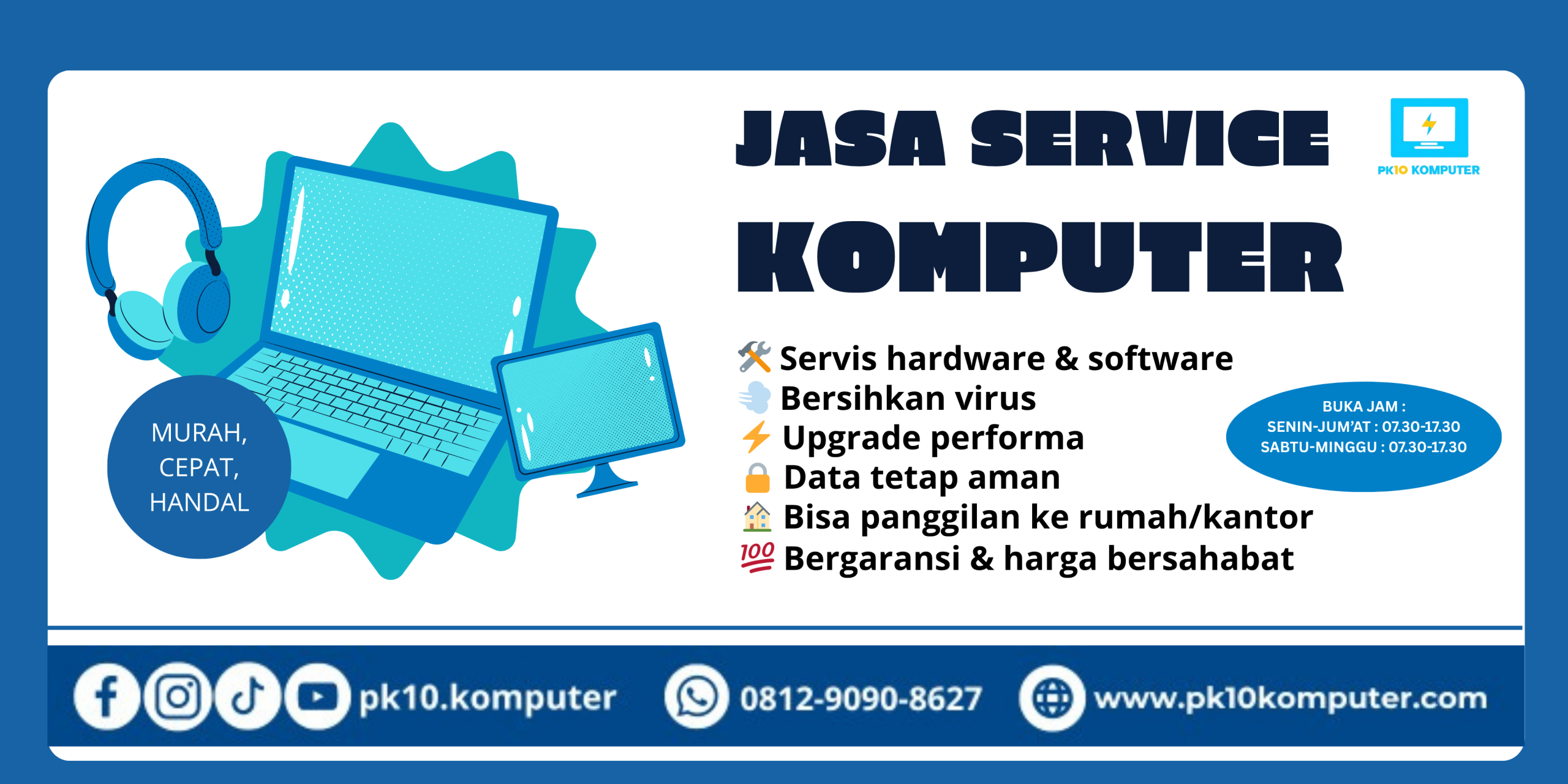 Jika Anda Mempunyai Permasalahan atau Kerusakan Pada perangkat Komputer, Laptop, printer, dll nya silahkan Hubungi kami Sekarang juga untuk mengatasi/Memperbaiki masalah pada perangkat anda. Perbaikan ditangani langsung oleh teknisi professional dan berpengalaman Jika anda Tertarik Silakan kunjungi Tempat Kami.