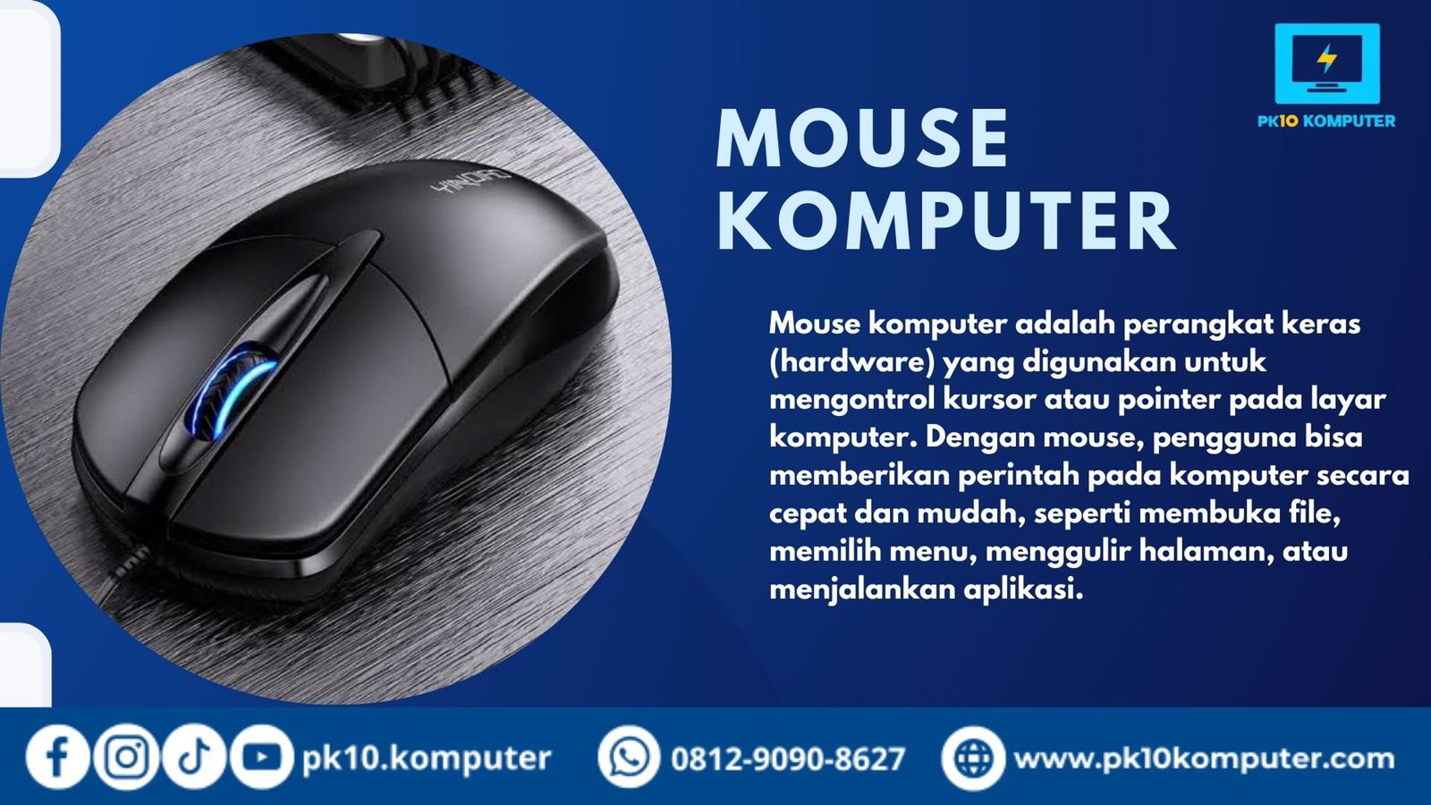 Mouse komputer adalah perangkat input yang digunakan untuk mengarahkan kursor di layar monitor. Dengan mouse, pengguna bisa mengklik, memilih, menyeret, dan menjelajahi antarmuka komputer dengan lebih mudah dan cepat.