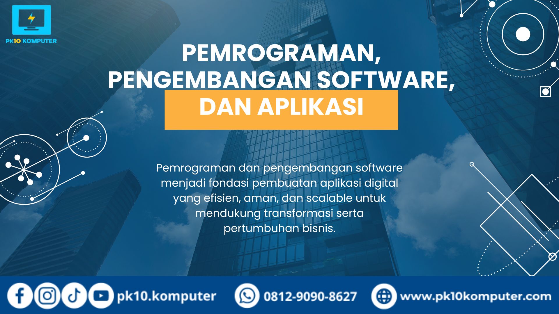 Pemrograman dan pengembangan software menjadi fondasi pembuatan aplikasi digital yang efisien, aman, dan scalable untuk mendukung transformasi serta pertumbuhan bisnis.