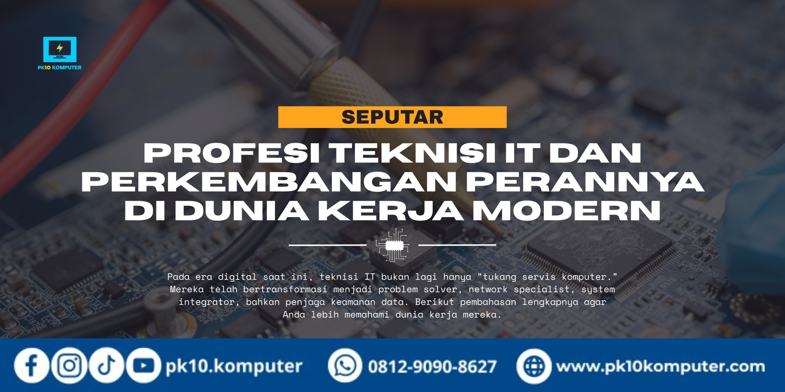 Teknisi IT modern adalah tulang punggung di banyak bisnis dan instansi. Dengan berkembangnya teknologi seperti AI, cloud computing, smart CCTV, dan digital marketing, profesi ini menjadi sangat strategis dan menjanjikan.