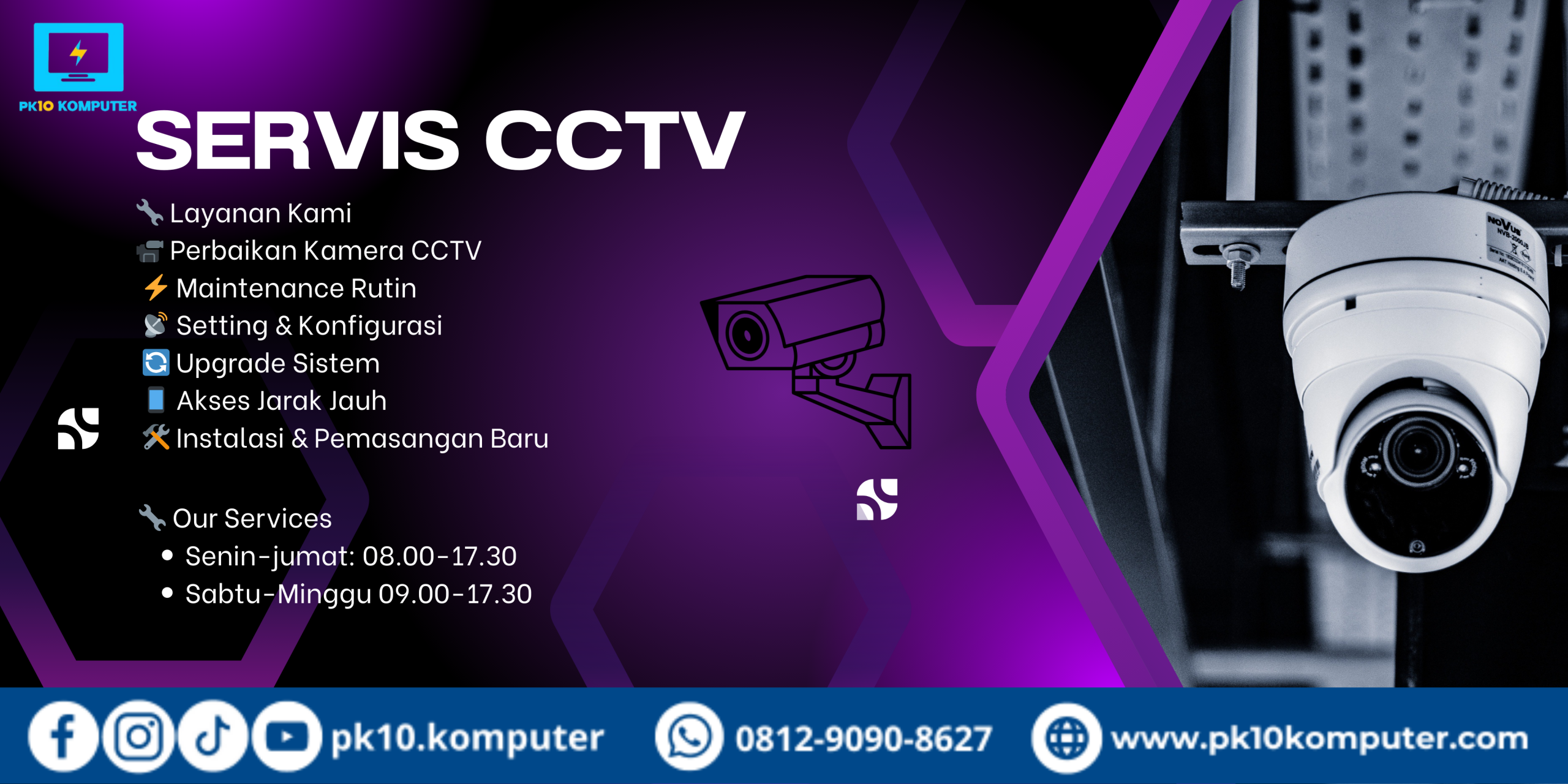 - Pemasangan CCTV untuk rumah, kantor, sekolah, atau bisnis.