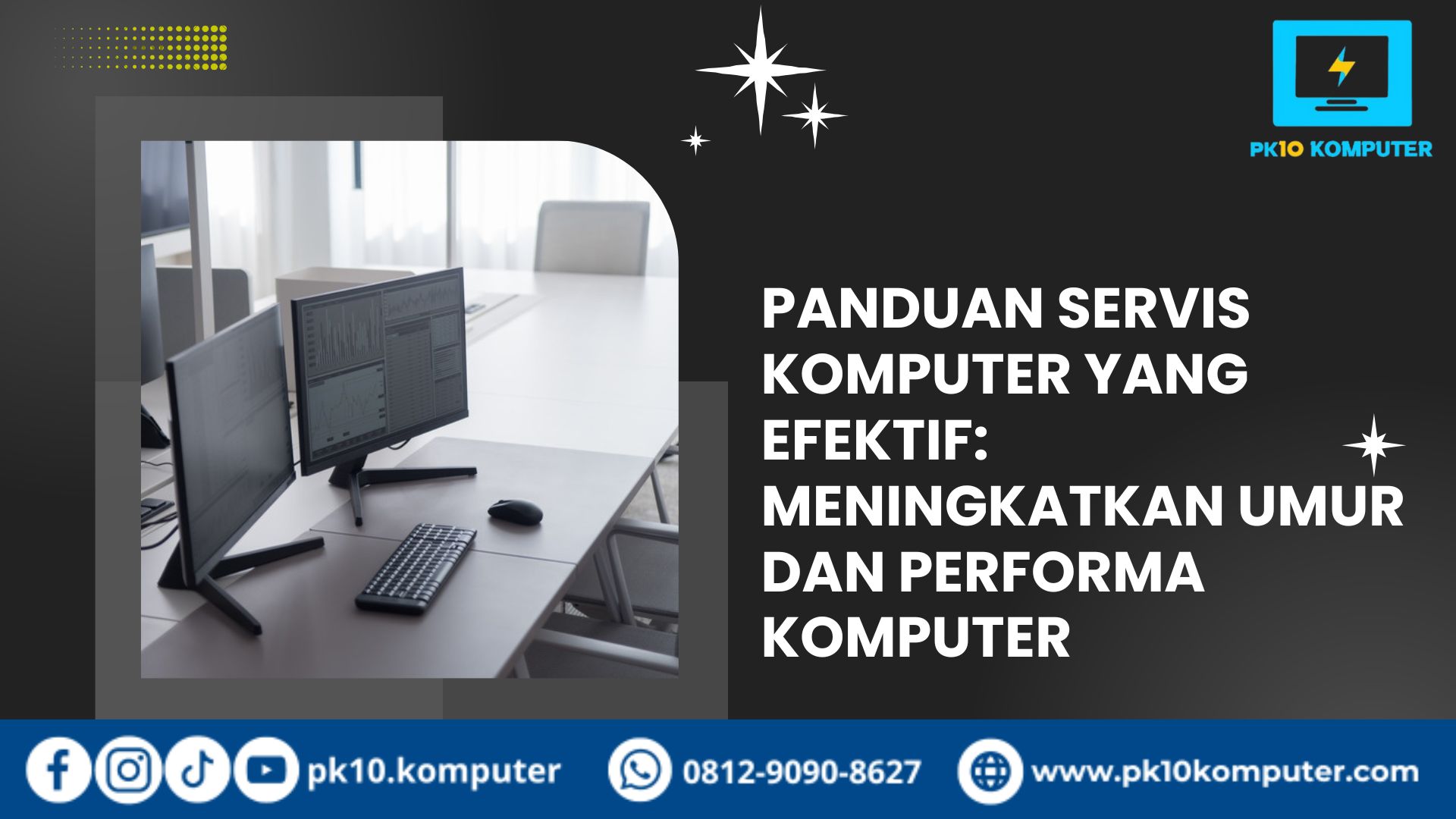 Servis komputer adalah solusi penting untuk menjaga agar komputer tetap bekerja dengan optimal, aman, dan tahan lama. Dengan melakukan perawatan rutin, memperbaiki kerusakan sejak dini, dan memilih tempat servis yang tepat, pengguna dapat menghindari gangguan serius saat bekerja atau belajar.